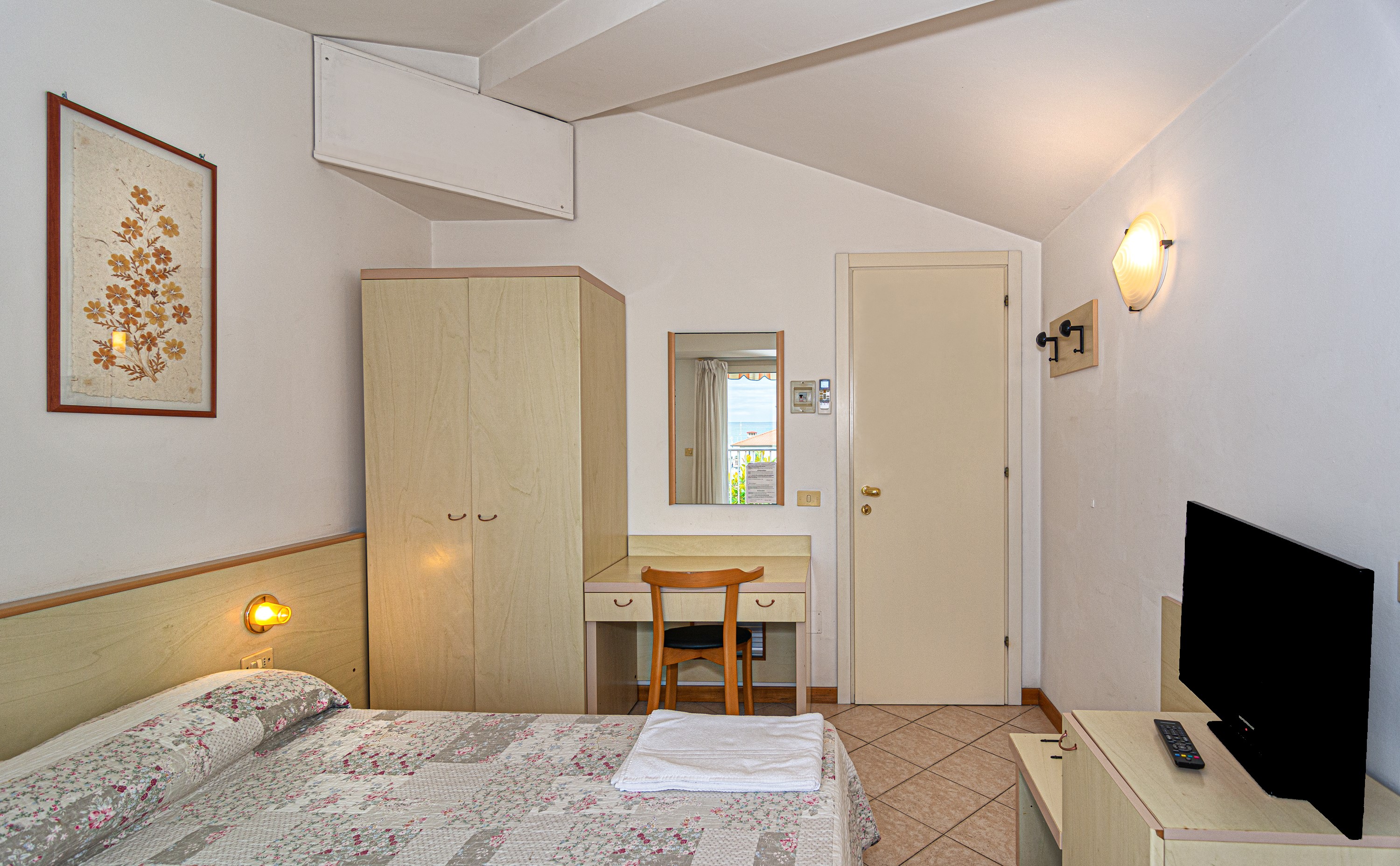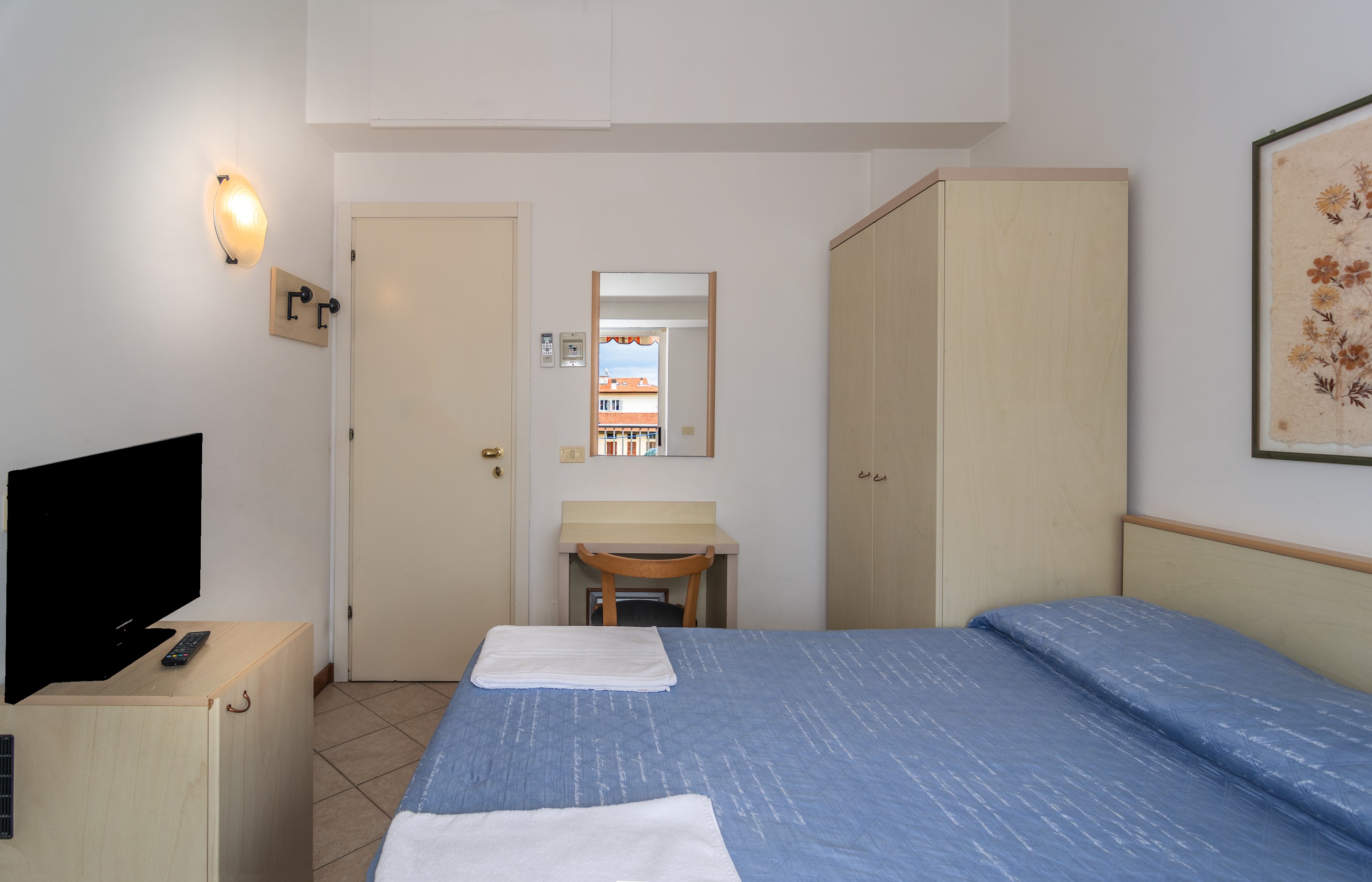 Graziosa e confortevole, quanto basta per trascorrere in pieno relax le vacanze a due passi dal mare. Adatta per la coppia che  e vuole avere  confort e  privacy. Eventuale culla su richiesta Dotata di tutti i servizi. Balcone con supplemento. Include un set di cortesia.  Non tutte le camere matrimoniali sono provviste di balcone