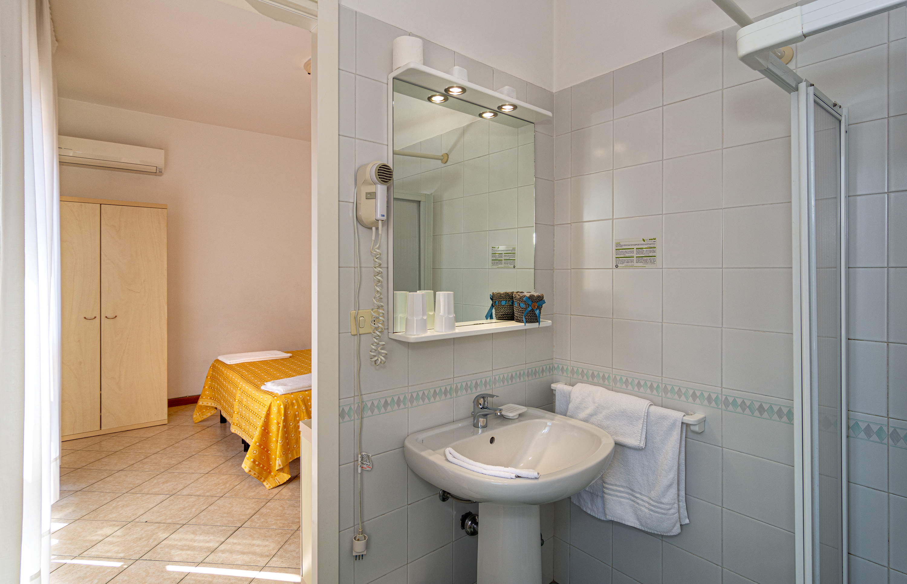 Luminosa e soleggiata, adatta alla piccola famiglia oppure a 3 amici o amiche, insomma ha tutto quello che serve per trascorrere una vacanza semplice e divertente Dotata di tutti i servizi. Include un set di cortesia.  Balcone ccon supplemento        Non tutte le camere triple sono provviste di balcone